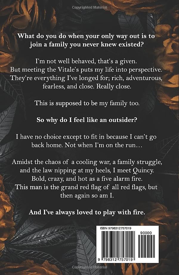 Amidst the chaos of a cooling war, a family struggle, and the law nipping at my heels, I meet Quincy. Bold, crazy, and hot as a five alarm fire. This man is the grand red flag of all red flags, but then again so am I.
