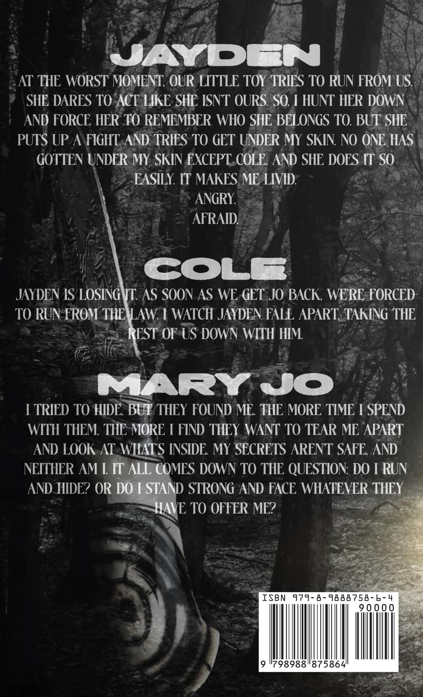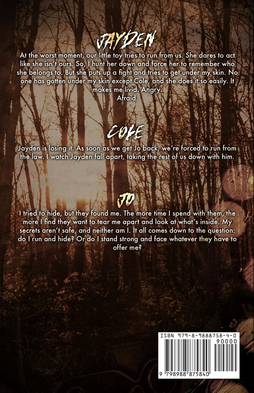 At the worst moment, our little toy tries to run from us. She dares to act like she isn’t ours. So, I hunt her down and force her to remember who she belongs to. But she puts up a fight and tries to get under my skin. No one has gotten under my skin except Cole, and she does it so easily. It makes me livid.