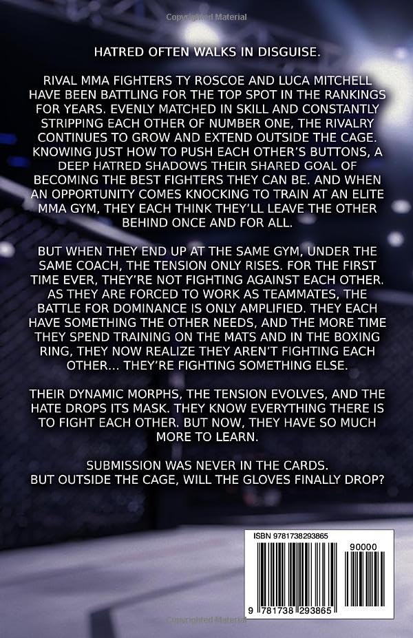 Rival MMA fighters Ty Roscoe and Luca Mitchell have been battling for the top spot in the rankings for years. Evenly matched in skill and constantly stripping each other of number one, the rivalry continues to grow and extend outside the cage. Knowing just how to push each other’s buttons, a deep hatred shadows their shared goal of becoming the best fighters they can be. And when an opportunity comes knocking to train at an elite MMA gym, they each think they’ll leave the other behind once and for all.