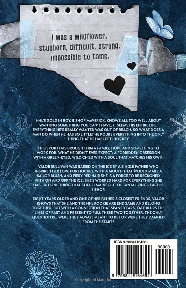 Valor Sullivan was raised on the ice by a single father who inspired her love for hockey. With a mouth that would make a sailor blush, and fiery red hair she is a force to be reckoned with on and off the ice. There doesn’t seem to be anything hard work won’t get her. Well, everything but him. Bishop is her Endgame. The only problem? He’s eight years older and one of her father's closest friends. Fate blurs the lines of past and present to pull these two together.