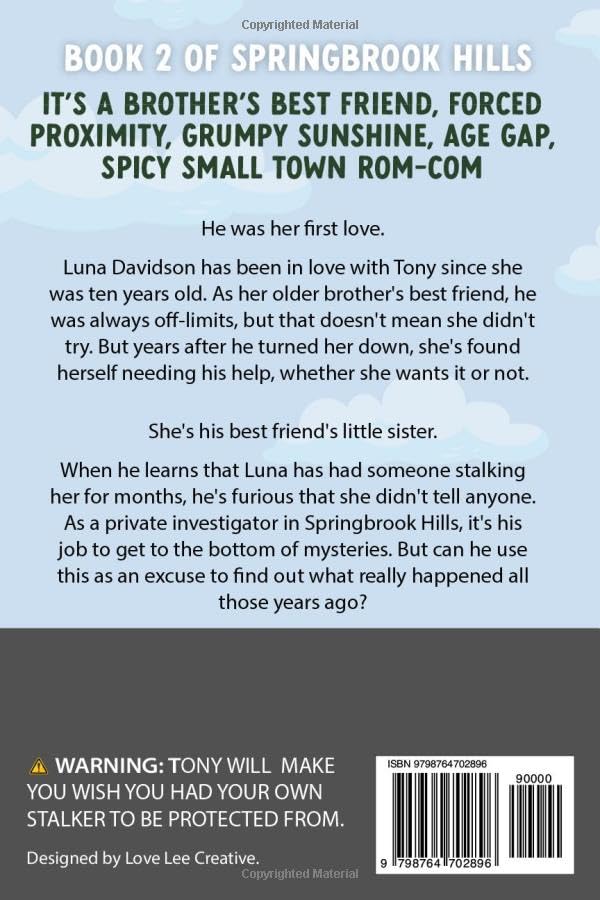 Luna Davidson has been in love with Tony since she was ten years old. As her older brother's best friend, he was always off-limits, but that doesn't mean she didn't try. But years after he turned her down, she's found herself needing his help, whether she wants it or not.
