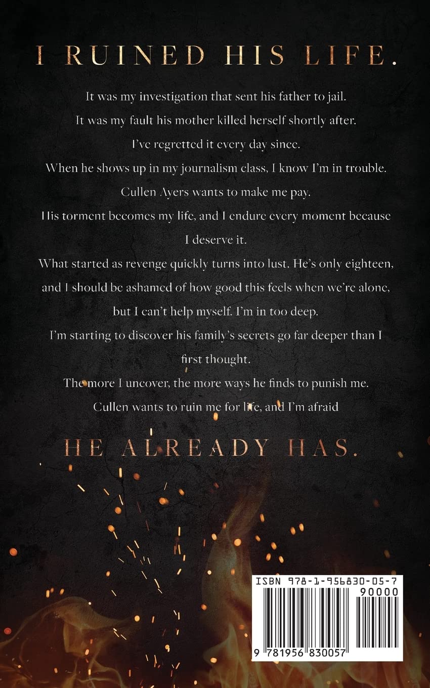 His torment becomes my life, and I endure every moment because I deserve it. What started as revenge quickly turns into lust. He’s only eighteen, and I should be ashamed of how good this feels when we’re alone, but I can’t help myself. I’m in too deep.