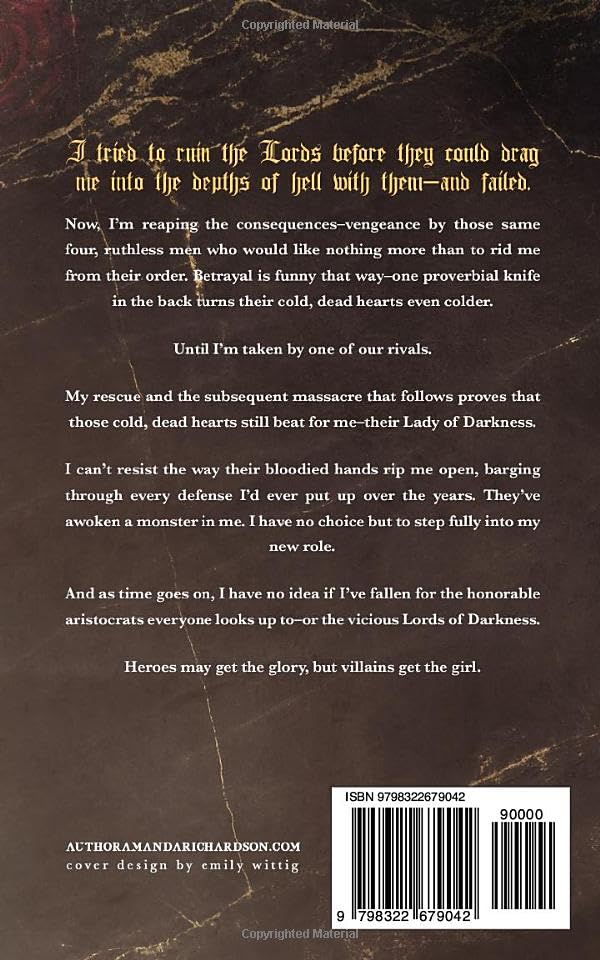 I tried to ruin the Lords before they could drag me into the depths of hell with them–and failed. Now, I’m reaping the consequences–vengeance by those same four, ruthless men who would like nothing more than to rid me from their order. Betrayal is funny that way–one proverbial knife in the back turns their cold, dead hearts even colder.