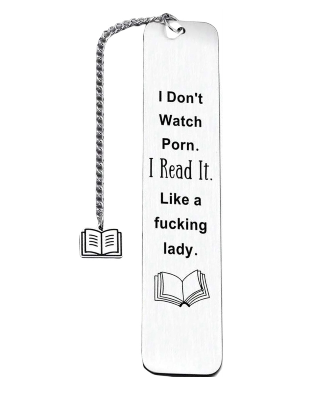 Bogmærke med tekst, kæde og en charm i rustfri metal. Mål: 13L x 2.6W cm