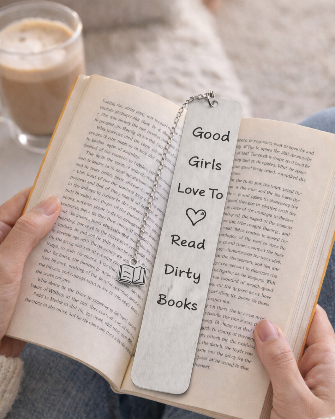 Dette stilrene bogmærke i stainless steel er perfekt til romance, smut og spicy fantasy-læsere. Med kæde og lille bog-charm er det både praktisk og dekorativt – og den perfekte lille gave til enhver booklover med humor.