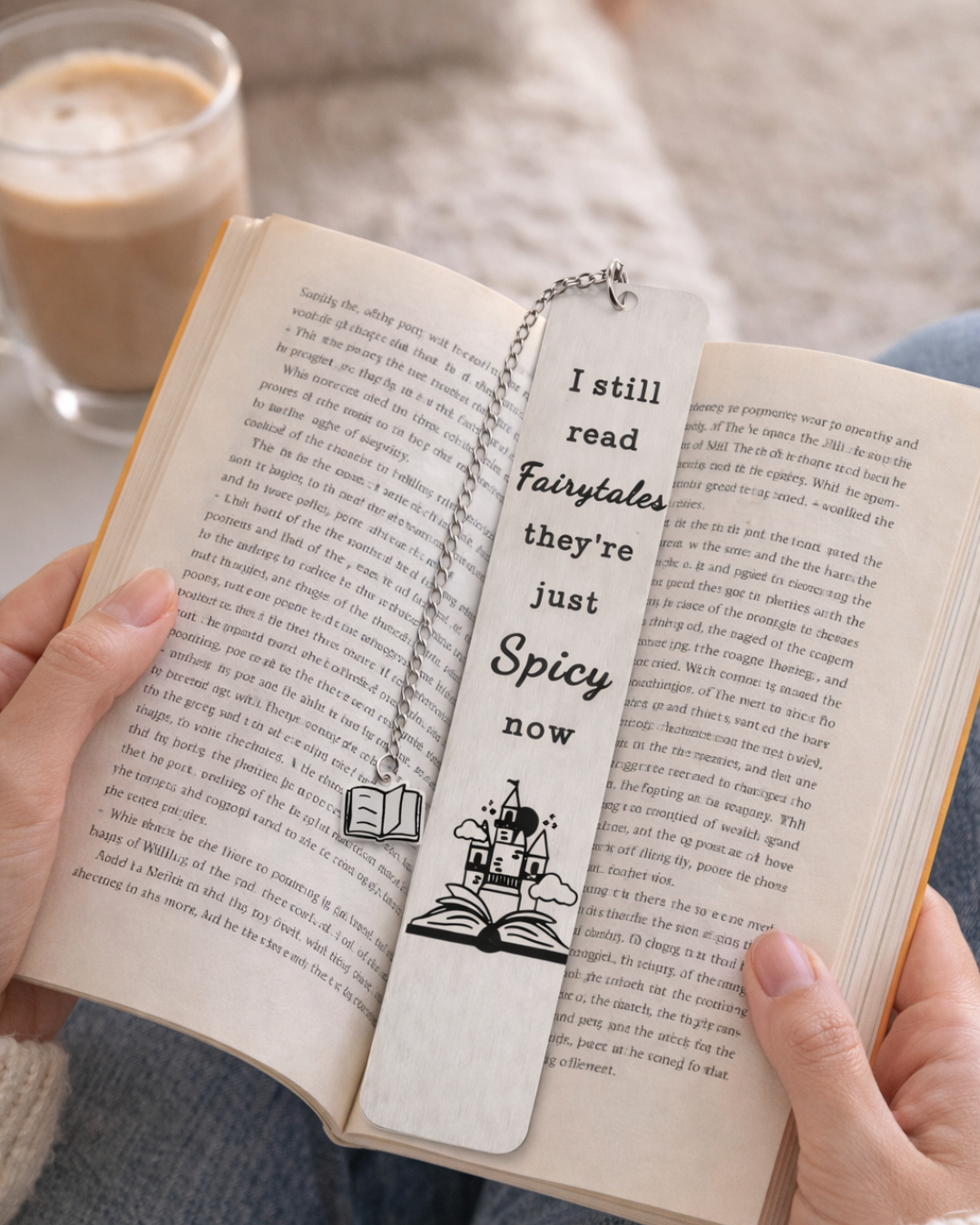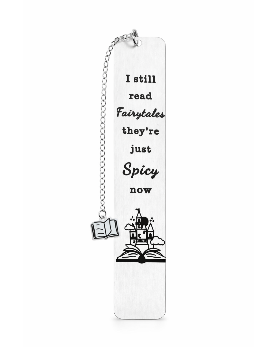 Dette elegante bogmærke i stainless steel er perfekt til romance- og fantasy-læsere, der ikke er bange for lidt spice i deres historier. Med kæde og lille bog-charm er det både praktisk og dekorativt – og en oplagt gave til enhver booklover.