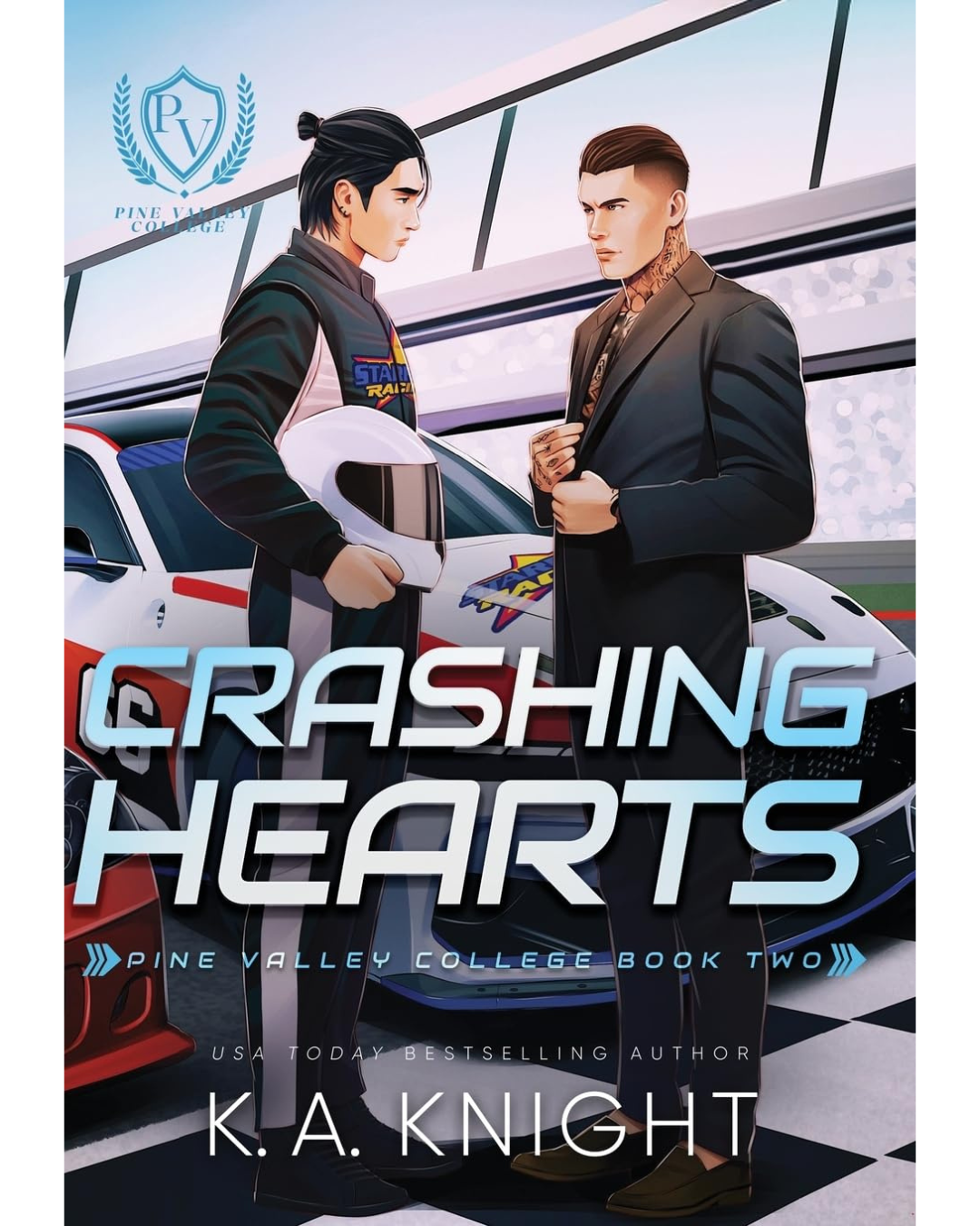 Crashing Hearts af K.A. Knight er en dark MM college romance i Pine Valley College-serien. En intens historie med obsessive MMC, opposites attract, grumpy x sunshine og high tension i en romance fyldt med besættelse, følelser og mørk kemi.
