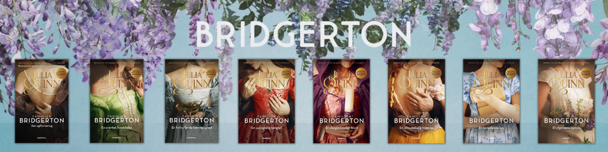 Otte søskende med fornavne i alfabetisk orden. Julia Quinns romantiske serie om familien Bridgerton er verdenskendt og udkommer nu endelig i Danmark.