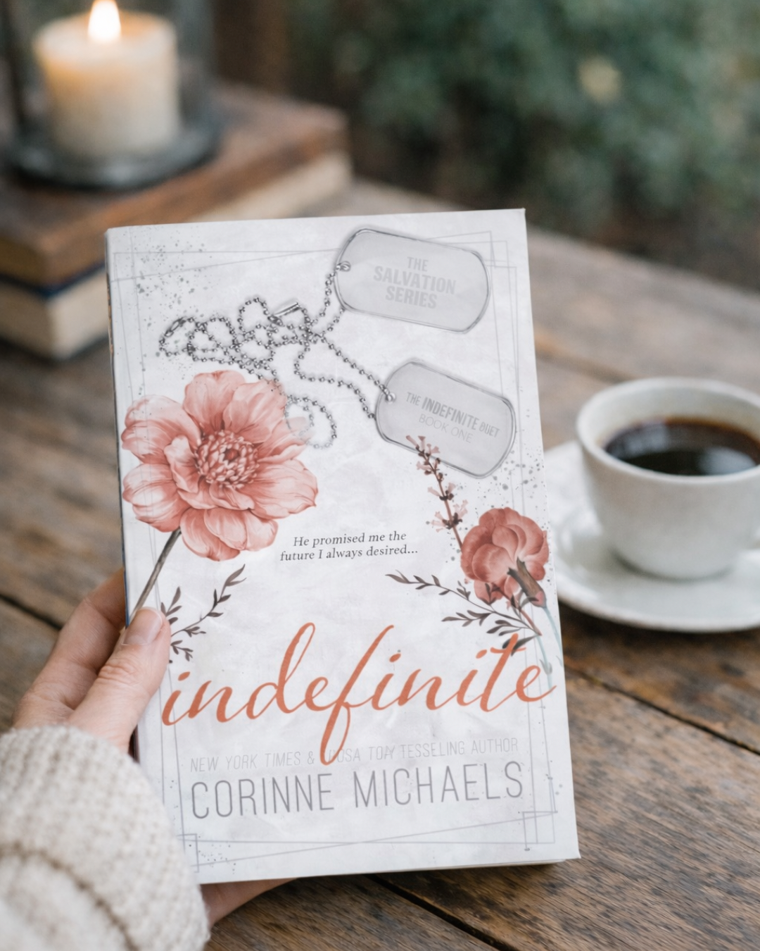 Indefinite af Corinne Michaels er en emotional romance i Salvation-serien. En hjerteskærende og forløsende historie med surprise pregnancy, second chance love, unrequited love, family longing og redemption – og en følelsesladet, håbefuld og tilfredsstillende vibe.