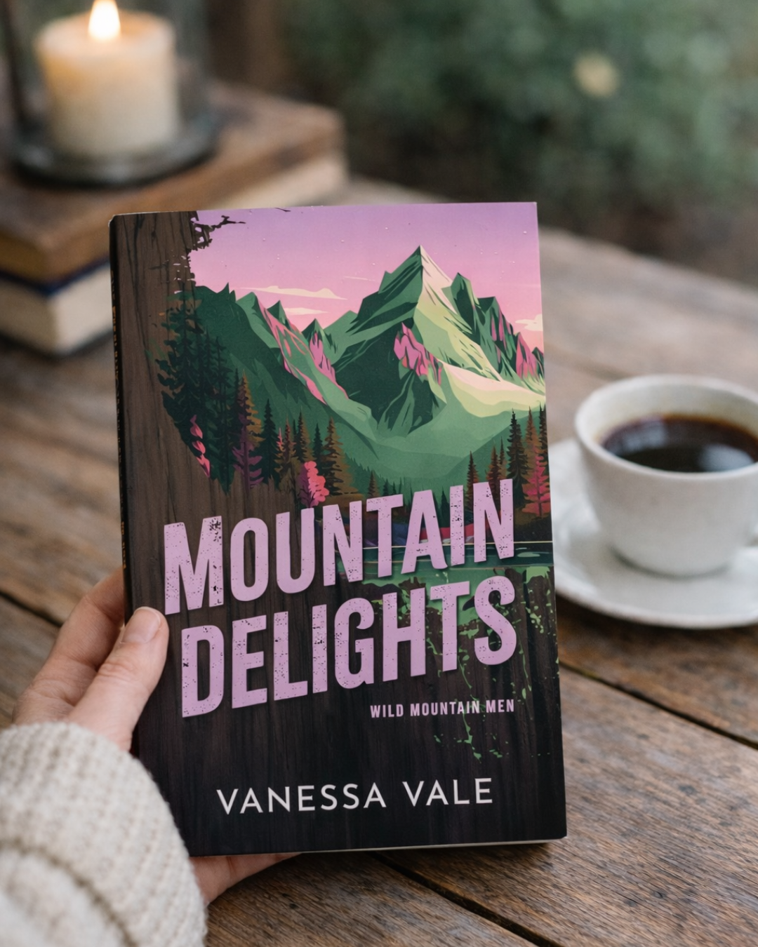Mountain Delights af Vanessa Vale er en contemporary romance i Wild Mountain Men-serien. En følelsesladet og spicy historie med why choose, wounded heroine, trauma healing, protective alpha males og murder mystery – med en intens og sårbar vibe.