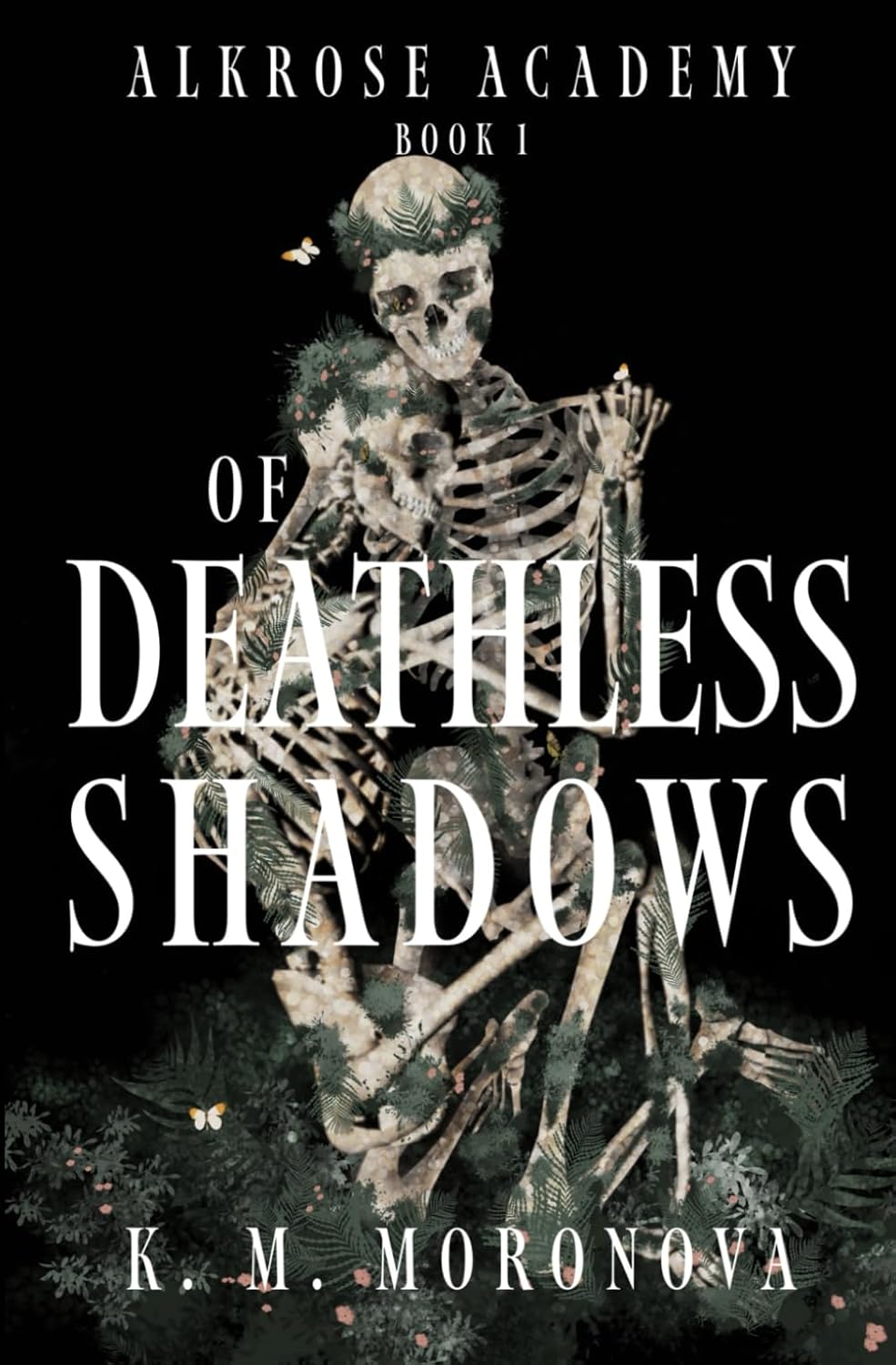 Of Deathless Shadows af K. M. Moronova er en dark fantasy romance i Alkrose Academy-serien. En haunting mørk historie med fated mates, enemies to lovers, memory loss, dark magic og found family – fyldt med angst, mystik og intens tiltrækning.